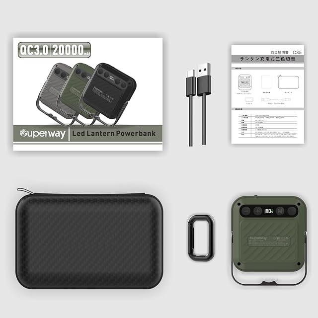 商品名:SUPERWAY 20000mAh led ランタンQC 3.0/22.5W 2024新登場 1600ルーメン 四色切替 昼光色 昼白色 電球色 赤色点灯 SOS IP65 防水 防災グッズ アウトドア ライト 電気量輝度数字表示 光色/輝度記憶 三脚接続可能 磁石内蔵 電気式ランタン GREEN