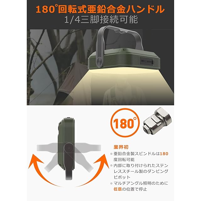 【デジタル表示輝度/電力量】輝度表示は0~100、電力量表示は0%~100。屋外キャンプ用にライトモード/明るさをスマートに記憶,180°「任意角度で停止」回転フック(スタンド)多方位照明に便利です