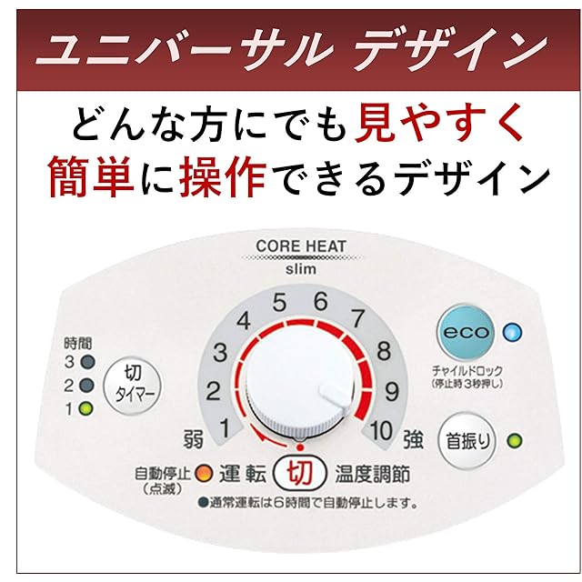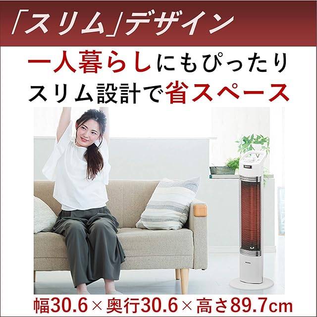 CORONA(コロナ) 遠赤外線電気ストーブ 【日本生産】 速暖 「コアヒートスリム」 省エネ ecoモード搭載 左右首振り タイマー機能 温度調節10段階 ホワイト DH-91RA(W)