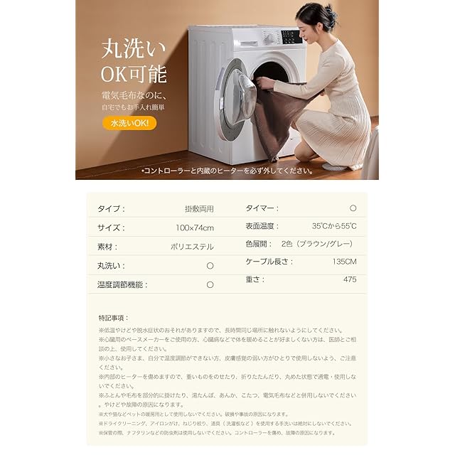 【やさしい肌触り 丸洗いOK】高品質フリース生地を採用し、柔らかくふんわりとしたさわり心地で、冷えに敏感な方も気軽に使用できます。内部ヒーターが熱を放出し、起毛繊維に温かい空気がたまり、しっかり保温してくれます。肌が弱い方や、強い暖房器具が苦手な方にもおすすめ。汚れたらコントローラーとヒーターを取り外し、毛布のみ丸洗いできます。