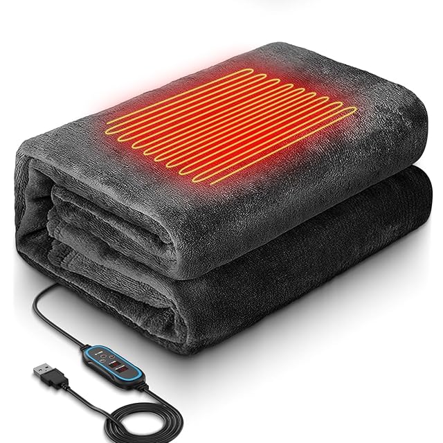 電気毛布 電気ひざ掛け 【LEDディスプレイ表示 3段階温度調節】 電気ブランケット 掛け 敷き 兼用 タイマー 自動オフ ヒーター付き ひざ掛け 肩掛け USBブランケット 洗える 暖房器具 防寒対策 大判 省エネ キャンプ ソロキャンプ 車中泊 テント泊 アウトドア オフィス (グレー)