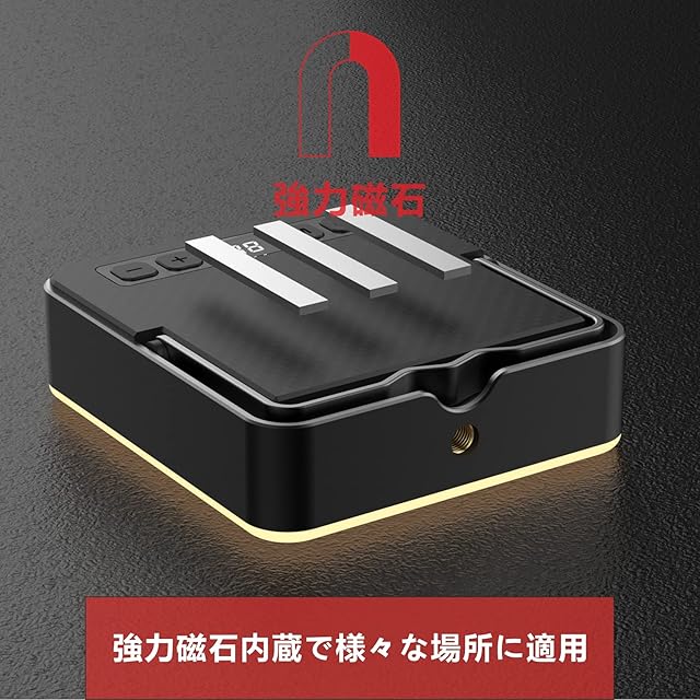 磁石と折畳みハンドル」:商品裏面磁石内蔵で、冷蔵庫やくるまの点検時に吸着して照明可能です。アルミ合金製のハンドルがあり、90°以内の角度で操り、手持ちや吊りなど様々な使用ができます。