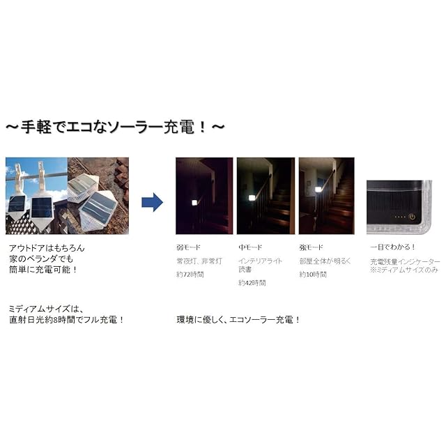 点灯時間:10時間(強)、42時間(中)、72時間(弱)