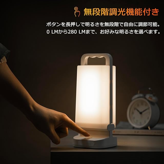 「お好きな明るさへ調光できる」led ランタンの色温度は3000K(電球色)、ランタンのベースにあるタッチセンサー式スイッチをタッチ続けって、快適な光度を無段調節できます。ランタンスイッチには記憶機能があり、一度調整した明るさは次回の点灯時にも適用されます。