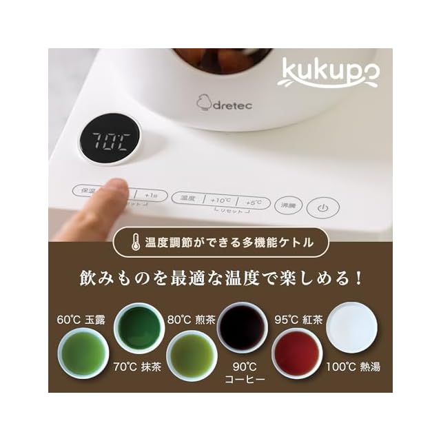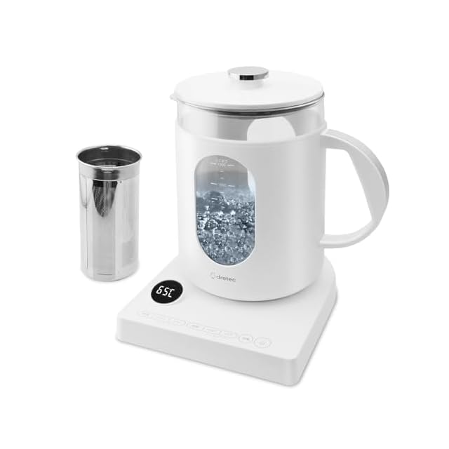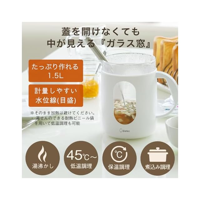 dretec(ドリテック) 温度調節機能付き電気ケトル ガラス 調理OK 1.5L 5℃単位温度調節 湯沸かし・低温調理・保温調理・煮込み 180分保温機能 自動電源オフ 空だき防止 茶こし付属 PSE認証済み 湯沸かし器 紅茶 お茶 コーヒー 新生活 母の日