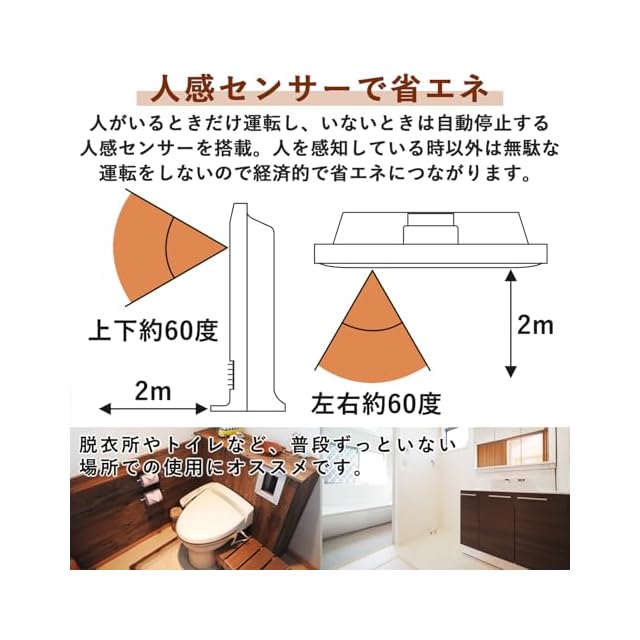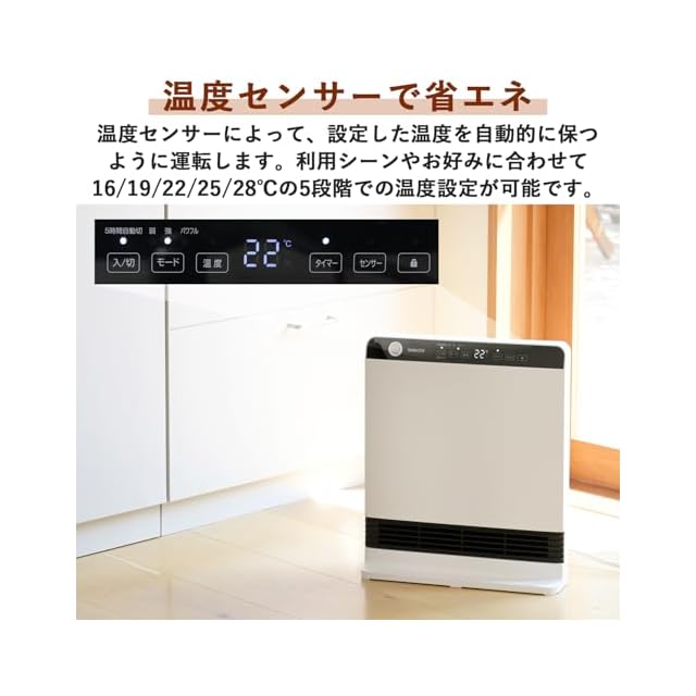 【省エネタイプ】人の動きを感知して自動で電源ON/OFFする人感センサーとセンサーで設定した温度を保ちながら運転する温度センサー搭載で、無駄な運転をせず、省エネに繋がります。