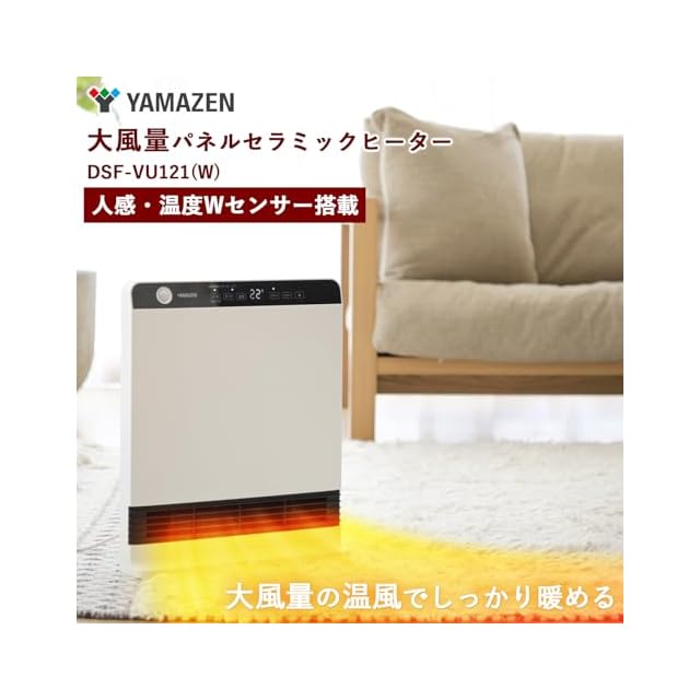 [山善] ヒーター パネル セラミックヒーター セラミックファンヒーター 大風量 人感センサー 温度センサー 省エネ 1200W 温風3段階切替 切タイマー 転倒オフスイッチ 足元 トイレ 脱衣所 ホワイト DSF-VU121(W)
