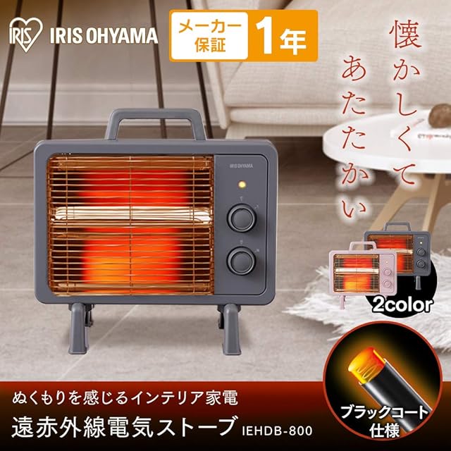 アイリスオーヤマ 電気ストーブ 速暖 転倒時電源OFF 400W/800W 2段階切替 ブラックコートヒーター IEHDB-800-H グレー