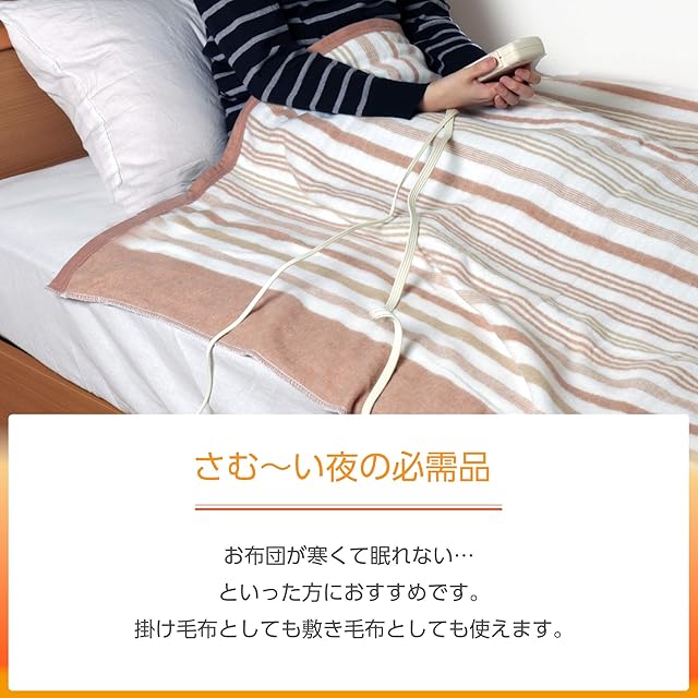 【温まらない場合】こちらの電気毛布は、布団の中で使用することを想定して設計しています。布団の外で使用する場合は、全く温かくならない場合がございますので、必ず布団の中でご使用ください。断熱性の高い布団を使うと、より温かくなり電気代の節約にもなります。