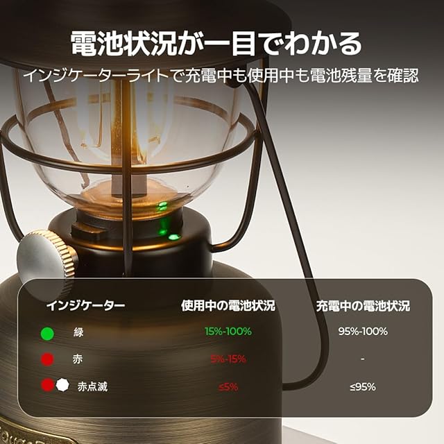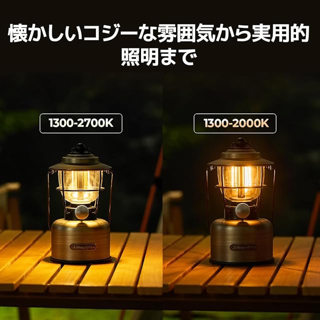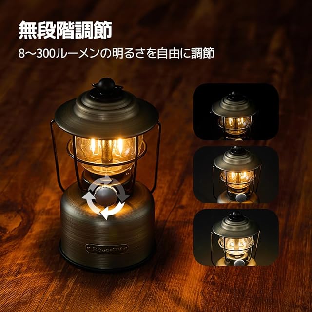 BougeRV LEDランタン レトロデザイン 無段階調節 8~300ルーメン 色温度調節機能(1300K~2700K) モバイルバッテリー機能付き 18W急速充電 IPX4防水 軽量コンパクト 長時間駆動 最大196時間 アウトドア・キャンプ・室内用 VL01