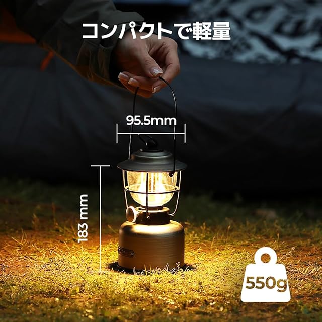 コンパクトで軽量:高さ183mm、重さ550gのコンパクト設計で、持ち運びが簡単。キャンプや旅行、アウトドアアクティビティに最適です。