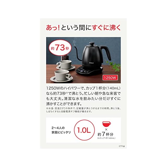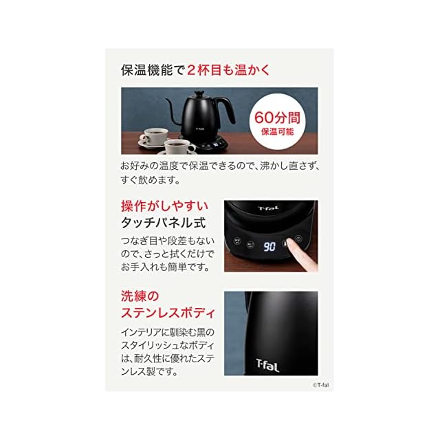 商品名:【オンライン限定】 ティファール 電気ケトル 1.0L ドリップ コーヒー 温度調節 「カフェ コントロール」 保温 ブラック KO9238JPA