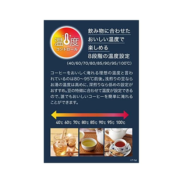 8段階の温度設定(40・60・70・80・85・90・95・100℃)