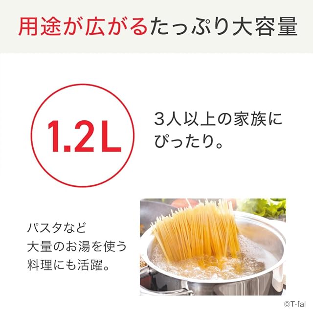 【用途が広がる大容量 1.2L】3人以上の家庭にぴったり。毎日のコーヒーやお茶はもちろん、パスタなどの大量のお湯が必要な料理シーンでも活躍します。
