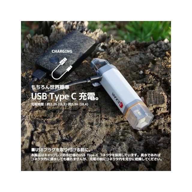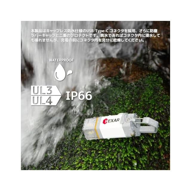 【災害対策/充電式LEDランタン】HEXAR UL4 ホワイト 無段階調光・電球色/昼白色切替・IP66・低誘虫キャップ/ポーチ付属・長期縦走/キャンプ/登山・ウルトラロングライフ