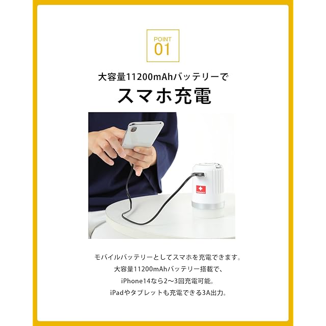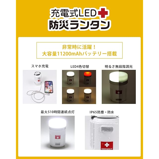 商品名:ランタン 充電式 LED 11200mAhバッテリー スマホ充電 防災グッズ Type-C 充電 防災セット 防災用品 非常用 停電対策 充電式LED防災ランタン 防災防犯ダイレクト