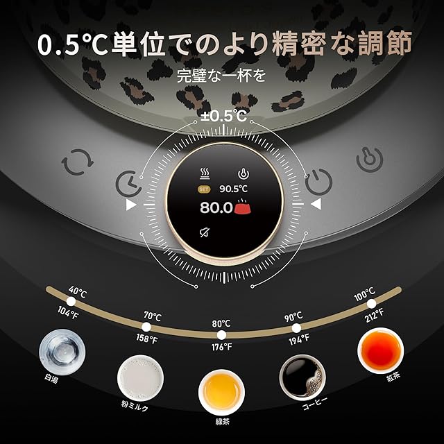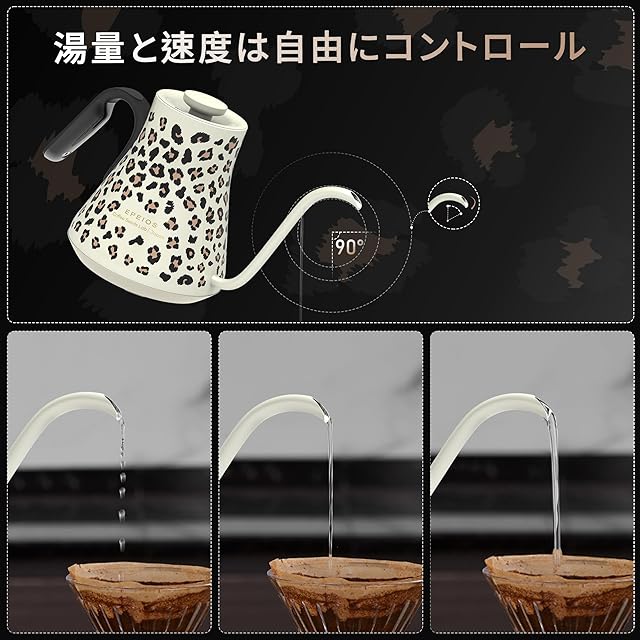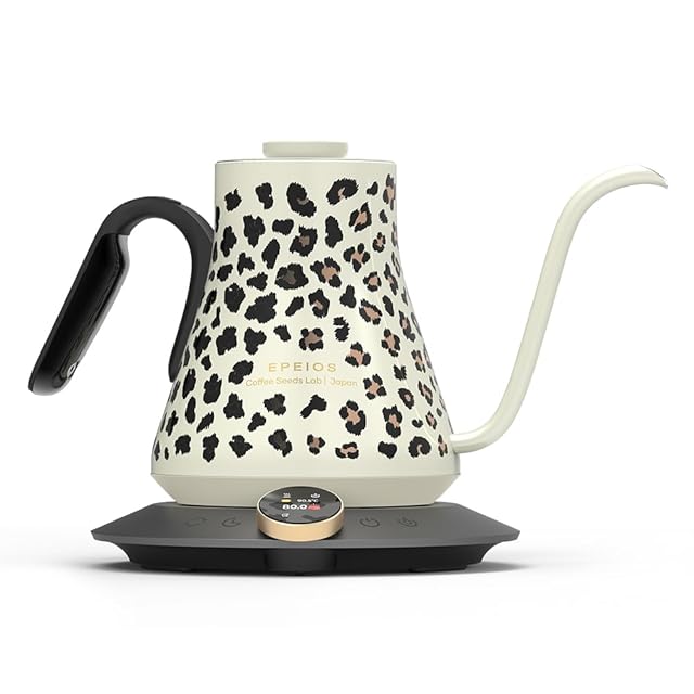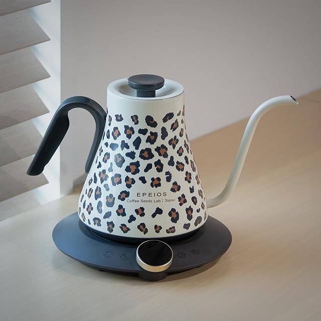 熱感応変色電気ケトル エペイオス(Epeios) ドリップ コーヒーケトル 900ml 1040W ドリップポート 0.5℃単位調整/ストップウォッチ機能/保温機能/℃・℉切替/空焚き防止/PSE認証済み 細口 電気ポット コーヒーポット コンパクト お手入れ簡単 ブラックレオパード Fine&Flow LUX-900