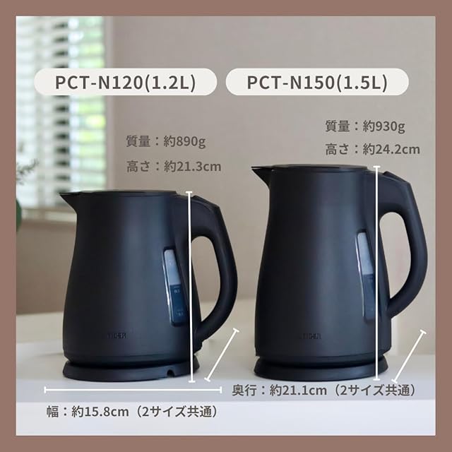 【WEB限定】タイガー魔法瓶(TIGER) 電気ケトル 蒸気セーブ 軽量 コンパクト 驚速 スゴ軽 湯沸かし 1.2L 転倒お湯漏れ防止 カラ炊き防止 マットブラック PCT-N120 K
