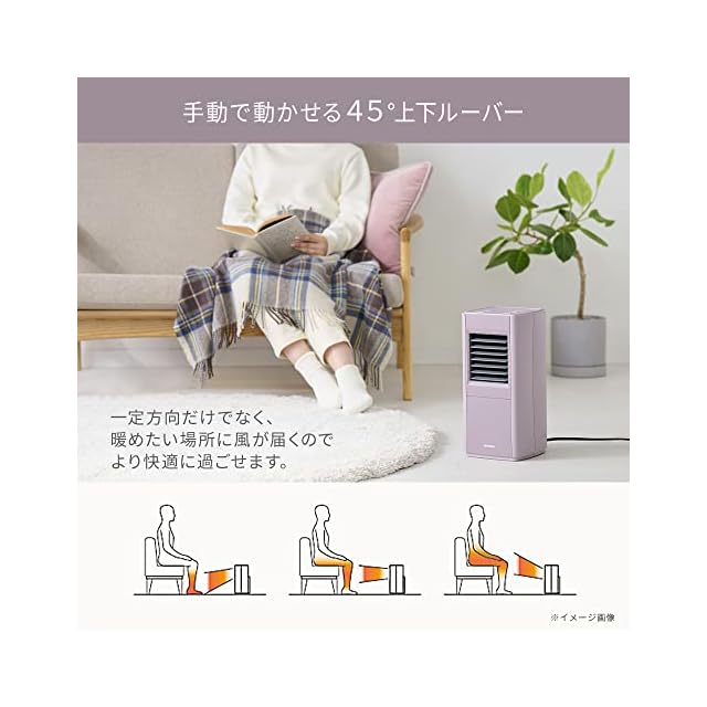 暖房の適用床面積目安(木造住宅/コンクリート住宅):[断熱材の厚みなし]約3畳(4.9m2)まで/約4.5畳(6.9m2)まで[断熱材の厚み50mm]約6畳(8.6m2)まで/約8畳(12.9m2)まで(※暖房の目安は、一般社団法人日本電機工業会の統一基準に準拠しています。室内外温度差15℃以内の地区で、暖房設定温度(暖房快適室温)20℃としたときを基準とし、1畳=1.65m2として小数点第1位を切り上げています。)