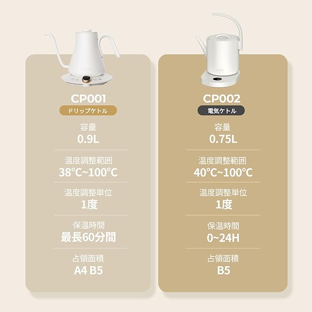 【暮らしに温もりを与えてくれるドリップケトル】エペイオスケトルは容量が0.75Lで、1~3人暮らしに最適、電気ポットとしても使いやすいです。コンパクトでモダンなデザインが、限られたスペースットする。
