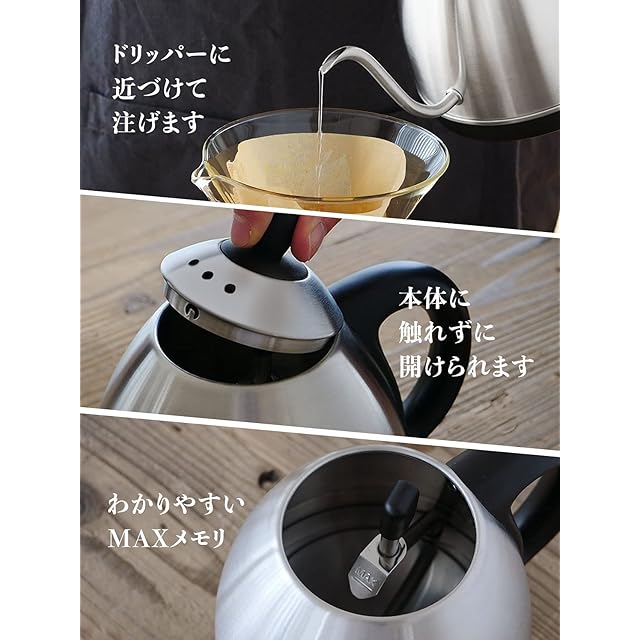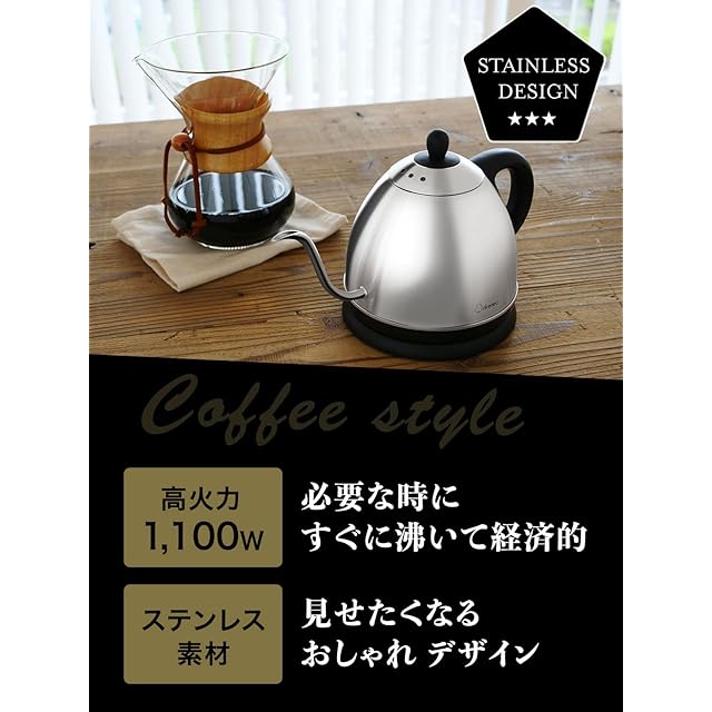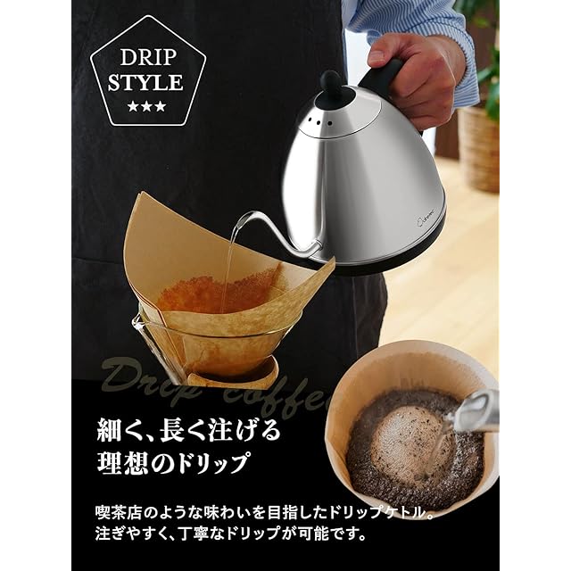 本格的なドリップコーヒーを手軽に味わえます。気軽にカフェ気分を味わいたい人におすすめです。必要な分だけ素早く沸かせるので、家族で使う方だけでなく、ひとり暮らしの方や職場で使いたい方にもおすすめです。細口の注ぎ口だから、湯量の調整をしながらドリップすることができます。