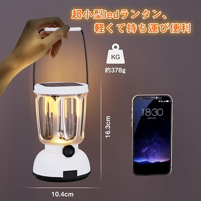 【超小型のLEDランタン/軽量で持ち運びに便利/IPX4級防水】このLEDランタンは10.4×10.4×16.3cm、重量も約378gと軽く、持ち運びや収納に便利です。コンパクトなサイズと軽量設計により、バックパックの隙間にも簡単に収納可能。キャンプ、ハイキング、ピクニックなどのアウトドア活動で、余計な負担を感じさせません。IPX4 級防水性能で安心使用。雨天の露営や水しぶきがかかる場面でも大丈夫! 屋外での天候変化に柔軟に対応し、突然の雨でも機能低下を心配する必要がありません。