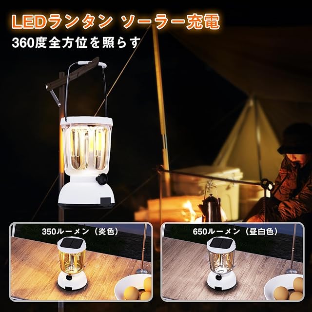 Mesqool LEDランタン ソーラー キャンプランタン ソーラーライト 3in1充電式 ランタン PSE認証済 高輝度 650ルーメン 無段階調光 6000mAh モバイルバッテリー機能付き 防水 防虫 軽量 アウトドア 夜釣り 登山 緊急 防災グッズ 停電 非常用(ホワイト)