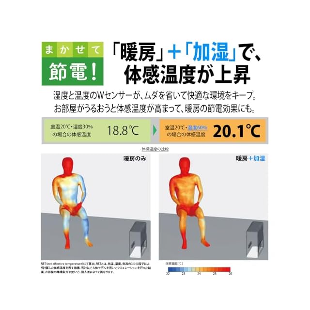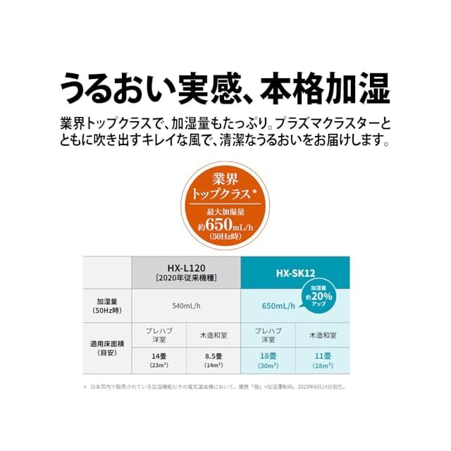 加湿の適用床面積(目安):木造和室:11畳(18m²)/プレハブ洋室:18畳(30m²)