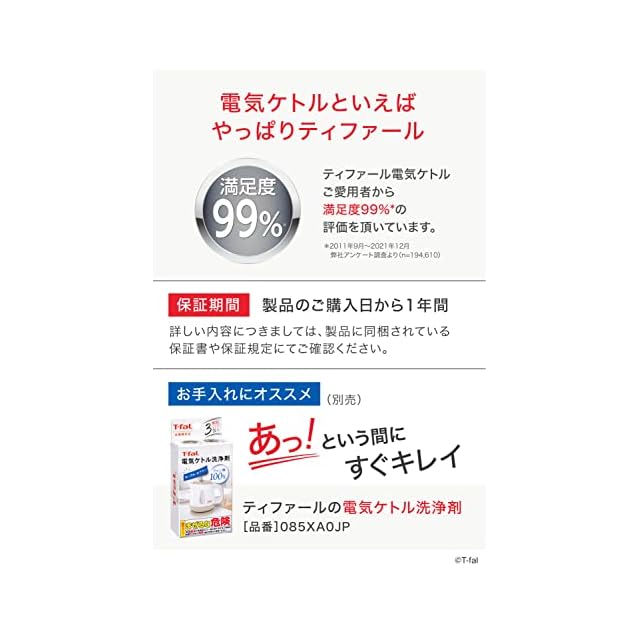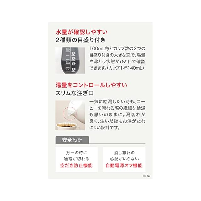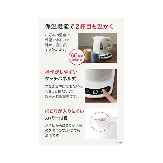 ティファール 電気ケトル 0.8L 温度調節 8段階 「アプレシア コントロール ホワイト」 保温 自動電源オフ 空だき防止 KO7201JP