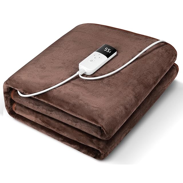 AooDen 電気毛布 敷き 洗える 160×80cm 無段階温度調節 1-12時間タイマー 電気敷き毛布 シングル 厚手生地 毛玉なし 省エネ 丸洗い可 ダニ退治 防寒対策 暖房器具 PSE認証済み (ブラウン)