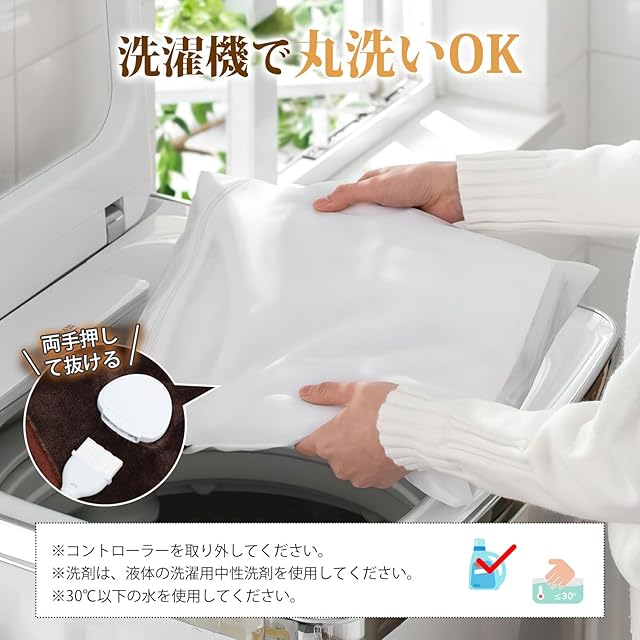 【洗濯機で丸洗いOK&ダニ退治】優れたシール性能で、電気ブランケットは内部のヒーター線を傷める心配する必要がありません。コントローラーを取り外すだけで、家で洗濯機で洗えます。家事の時間を短縮し、お手入れも簡単でいつでも清潔に利用できます(※乾燥機には対応していません)。温度目盛が「55℃」に設定され、1時間ほど置いて、ダニを消滅でき、抗菌·除臭を実現します。