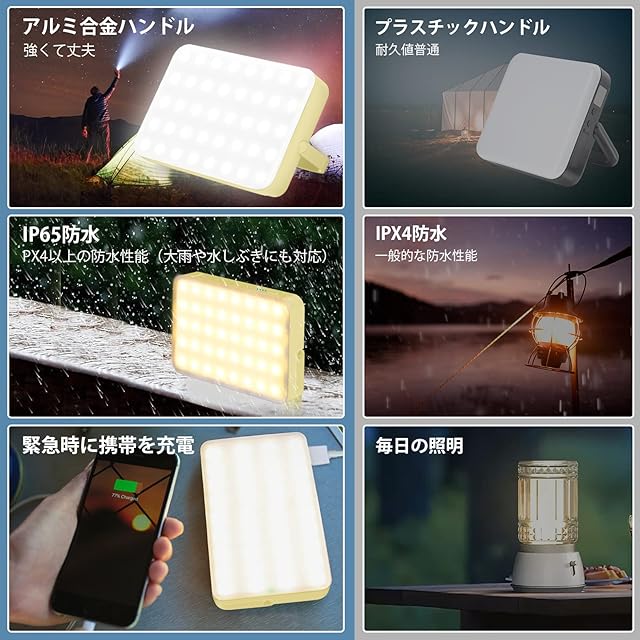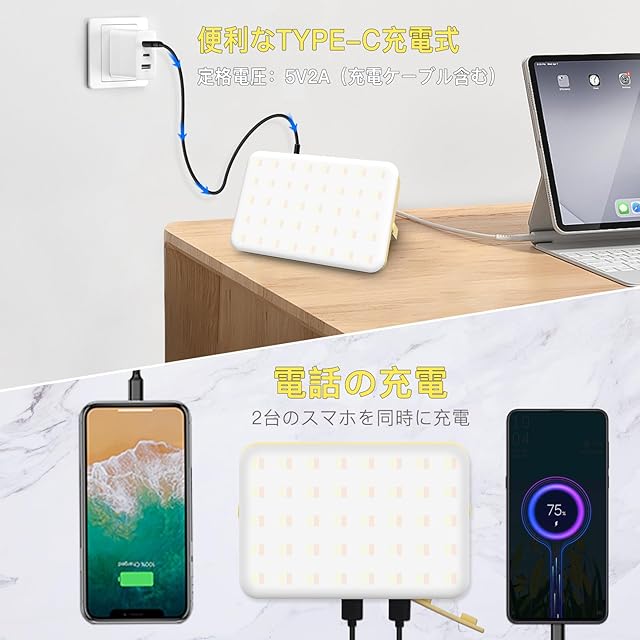 【20000mah大容量ランタン】キャンプ用ランタンには20000mahのポリマーバッテリーが内蔵されており、Type-cとMicro USB入力ポートの定格入力は5V2Aです。 緊急時にUSB出力ポートを介して2台の携帯電話を同時に充電できる2つのUSB出力ポート。