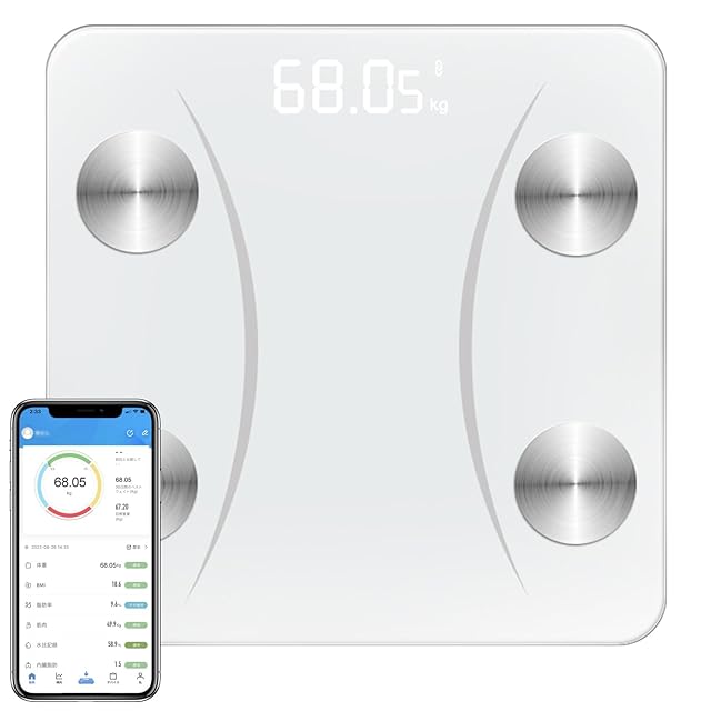 体重計 体脂肪計 Bluetooth スマホ連動 ヘルスメーター 2025最新 体組成計 高精度/軽量収納 日本語APP ボディスケール 多機能測定 体重、体脂肪率、筋肉率、体水分率、BMI など測定 iOS/Android対応 日本語取扱説明書