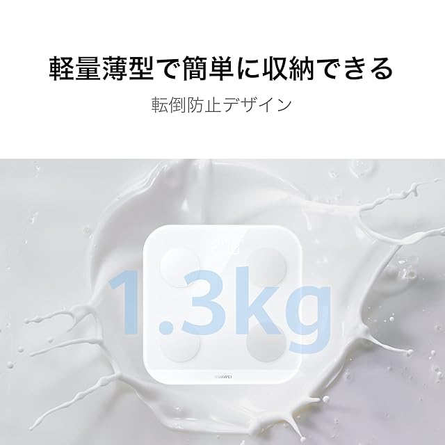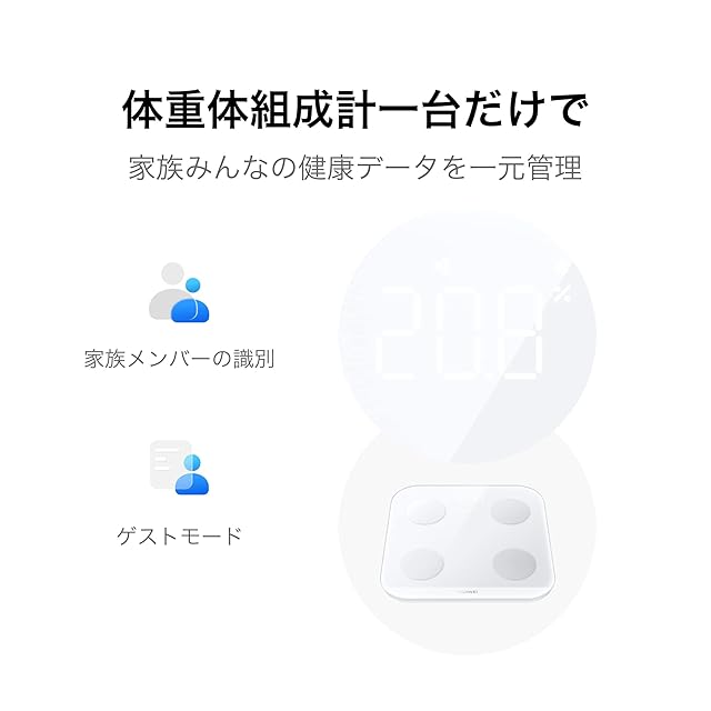 【専用アプリ対応】:「HUAWEI Health」アプリとBluetooth接続し、週、月、年単位で体重、体脂肪率、骨格筋量の変動推移をグラフで確認可能