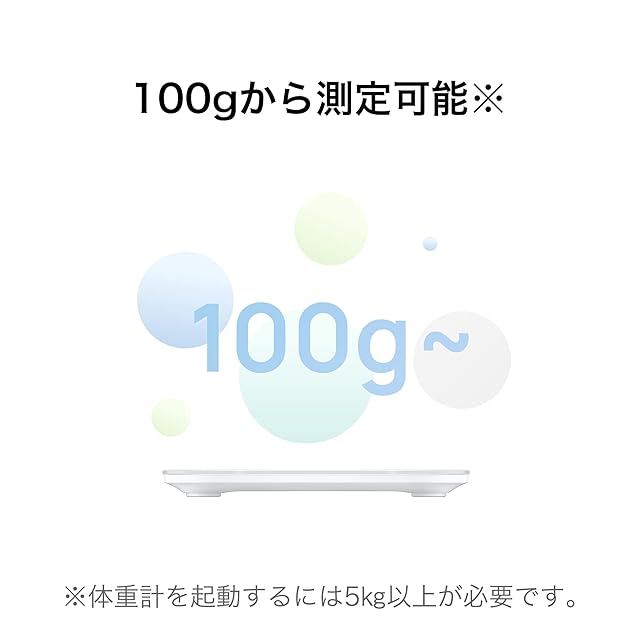 【100gから測定可能※1】:最小測定重量100g、測定表示単位100g(体重計を起動するには5㎏以上が必要です。起動後100gから測定可能)