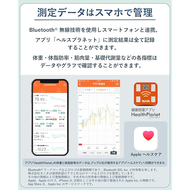 ・計量範囲:0~150kg ・最小表示:100g(0~100kg)、200g(100kg~) ・測定項目:体重、体脂肪率、筋肉量、内臓脂肪、基礎代謝量、BMI、体内年齢