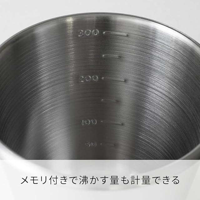 【商品詳細】本体サイズ:幅11.6×奥行8.7×高8.5cm、口径8.7cm、本体重量:120g、実用容量:300mL、本体材質:ステンレス、中国製