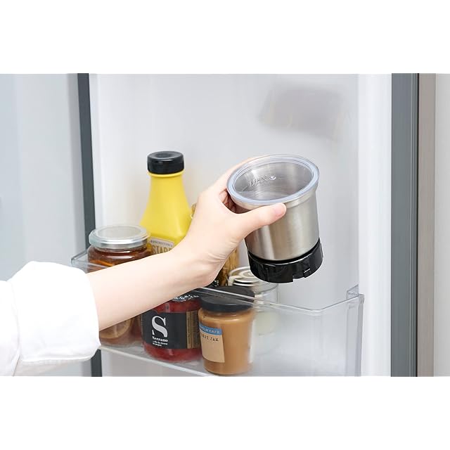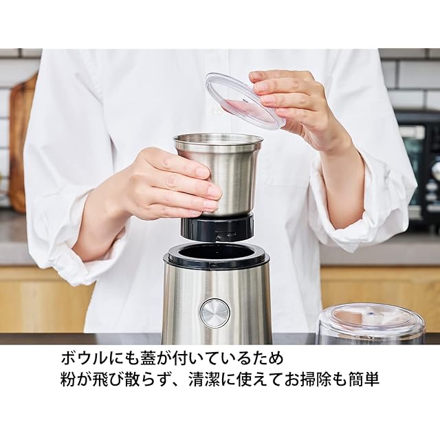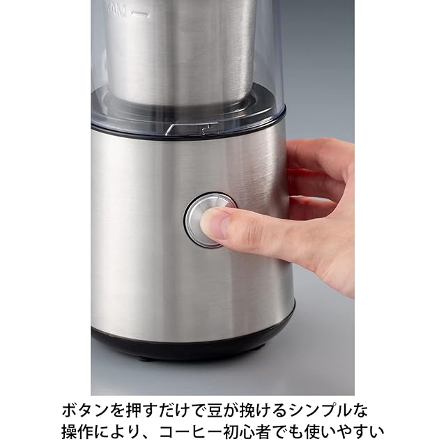 ボタンを押すだけで豆が挽けるシンプルな操作により、コーヒー初心者でも使いやすいグラインダ―
