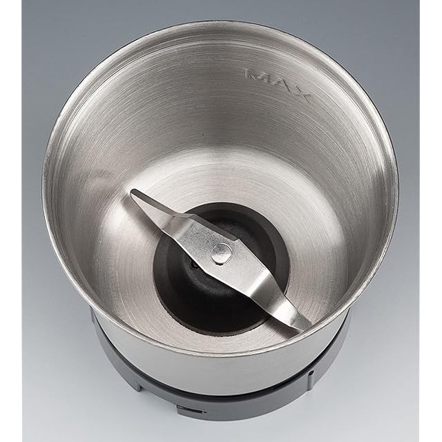 ボタンを押している間回転するため、お好みの挽き目を見ながら調整可能。約7秒で粗挽き、約10秒で中挽き、約12秒で 細挽き、20秒以上で極細挽き。