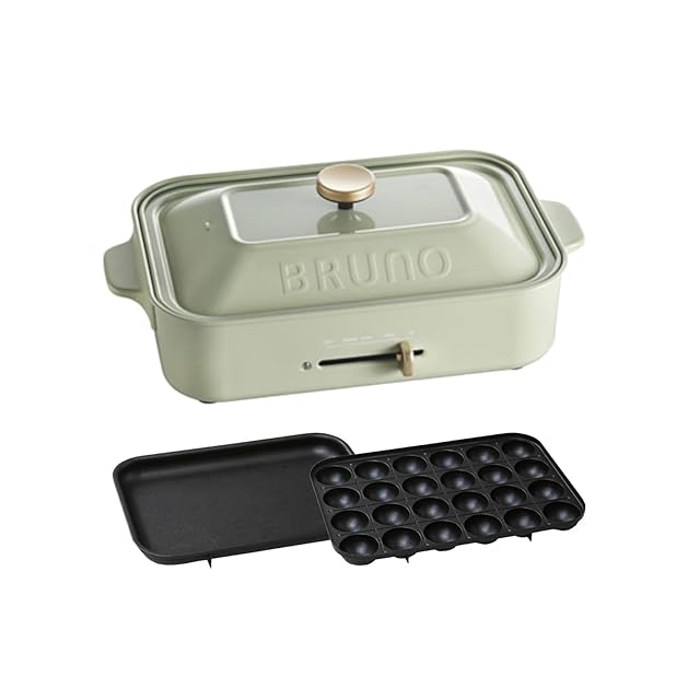 BRUNO ブルーノ コンパクトホットプレート 本体 プレート2種 (たこ焼き 平面)レシピブック 付き ミントグレー Mint Glay 緑 おしゃれ かわいい これ1台 一台 蓋 ふた付き 1200w 温度調節 焼肉 洗いやすい 1人 2人 3人 用 小型 ひとり暮らし にも A4 サイズ BOE021-MTGY 7761038