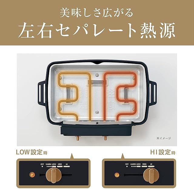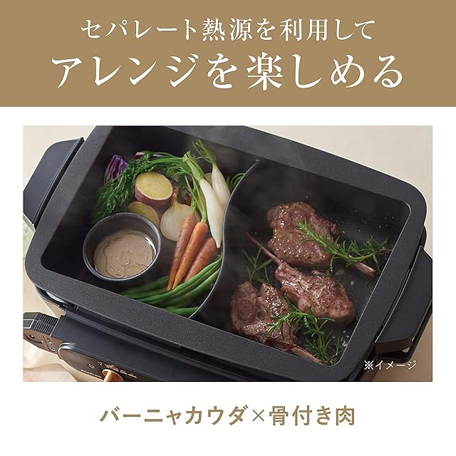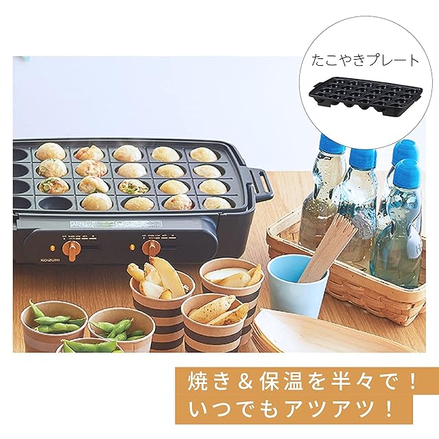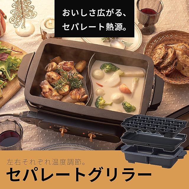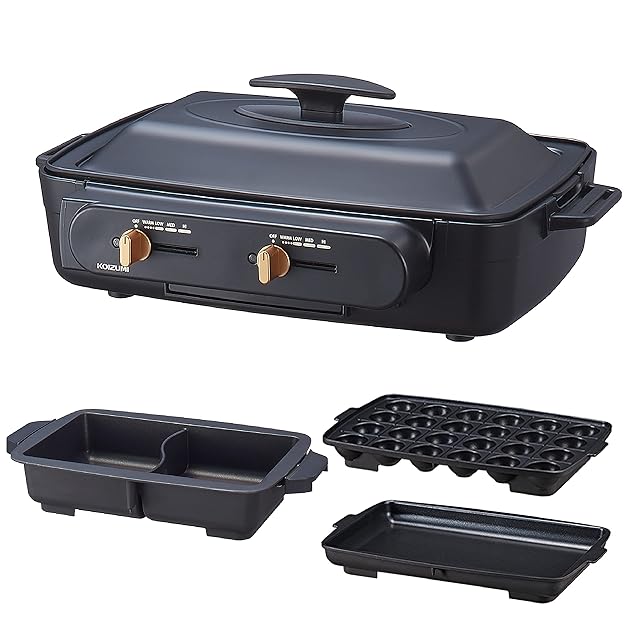 コイズミ セパレートグリラー ホットプレート グリル鍋 左右 温度調節 仕切り深なべ 平プレート たこ焼きプレート ブラック KSG-1201/K