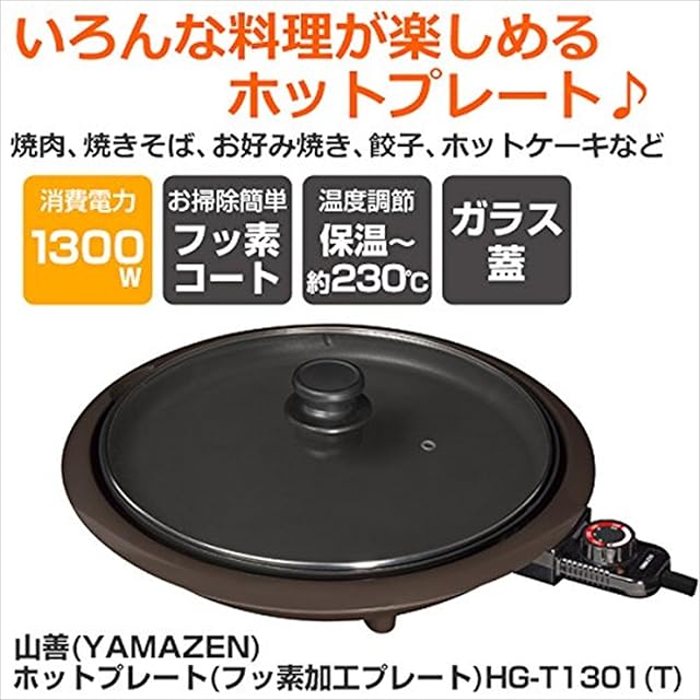 [山善] ホットプレート (フッ素加工プレート) HG-T1301(T)