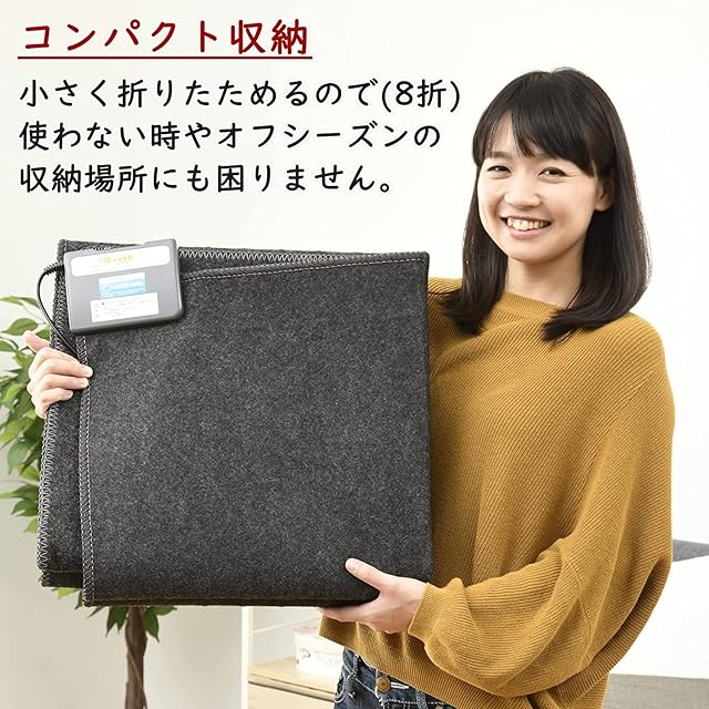 【商品仕様】本体サイズ:176×88cm/1畳相当、消費電力:200W、消費電力量(1時間あたり):目盛3=約100Wh/目盛5=160Wh、電気代目安(1時間あたり):目盛3=約2.7円/目盛5=約4.3円(1kW/h当り27円として計算)、表面温度(目安):目盛3=約36度/目盛5=45度、期間:お買い上げ日より1年間(の範囲については、書をご確認ください。(一般家庭用以外(業務用など)に使用された場合の故障及び損傷などは対象外となります))