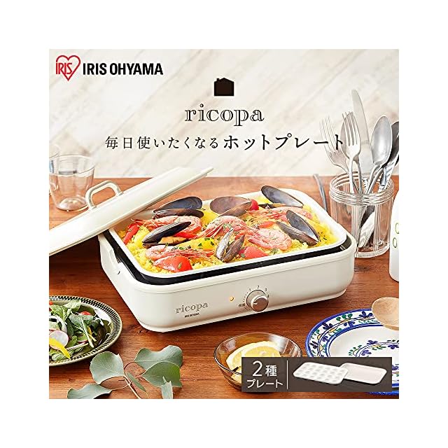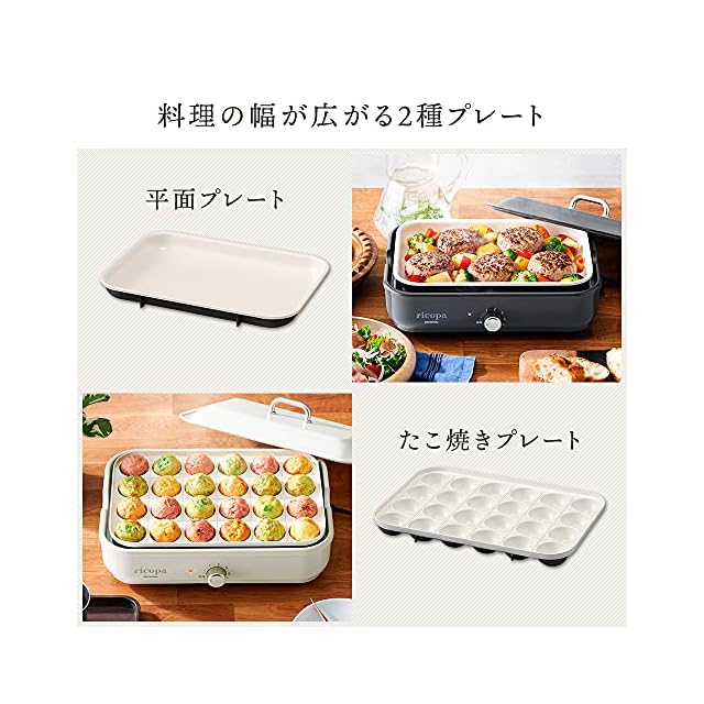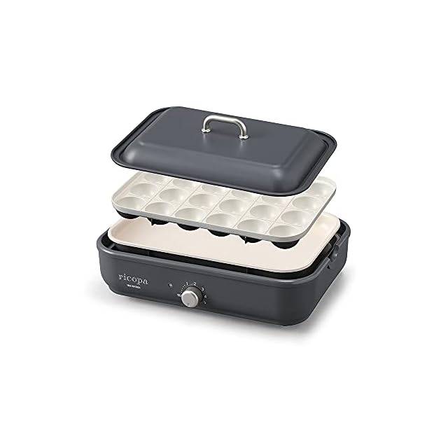 アイリスオーヤマ コンパクトホットプレート ricopa 2way ( 平面プレート たこ焼きプレート ) セラミック おしゃれ たこ焼き 焼肉 パエリア アヒージョ お手入れ簡単 洗いやすい 温度調節機能 250度 シンプル グレー MHP-R102-H