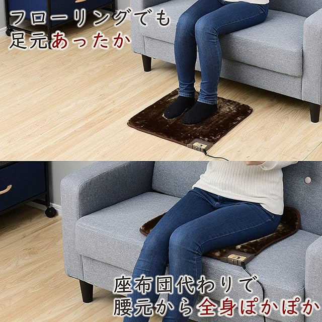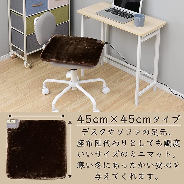 [山善] ミニマット 45×45cm ホットマット 強弱切替機能付 一人用 足元マット 座布団 電気マット ブラウン YMM-W45ATH