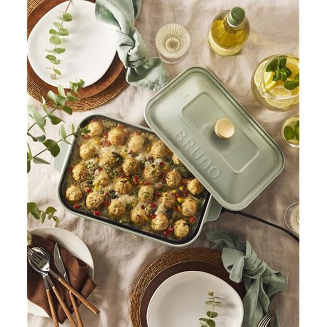 BRUNO ブルーノ コンパクトホットプレート 本体 プレート3種 (たこ焼き セラミックコート鍋 平面) 焼肉 結婚祝い ミントグレー Mint Glay 緑 おしゃれ かわいい これ1台 一台 蓋 ふた付き 1200w 温度調節 洗いやすい 1人 2人 3人 用 小型 ひとり暮らし にも A4 サイズ BOE021-MTGY 1705356