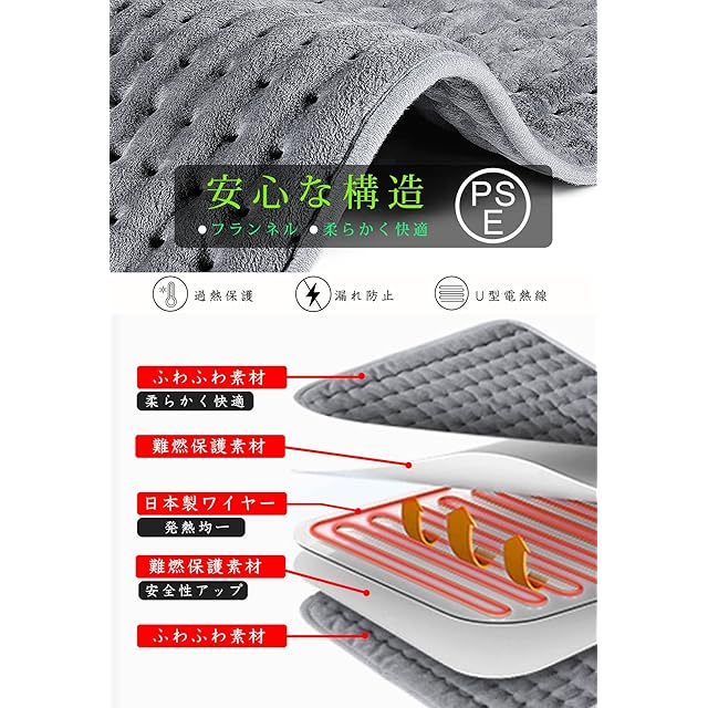 [過熱防止、過電圧保護] 該当電気ホットマットに過熱防止、過電圧保護の機能が内蔵しており、温度制御保護システムにより電圧が異常の場合は自動的に電源が切れ、安全性を高めます。