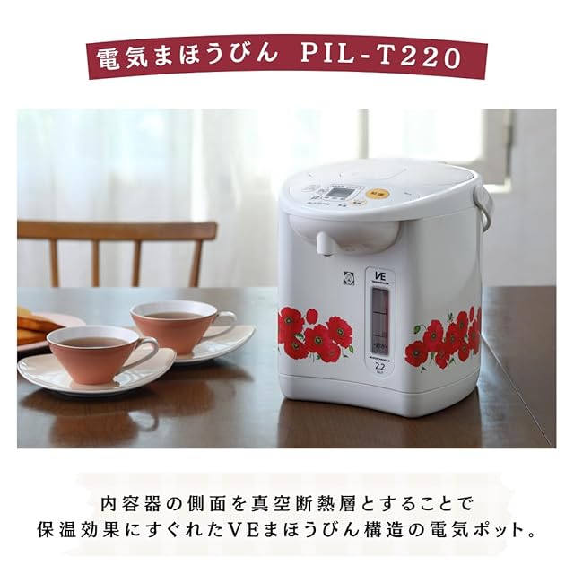 タイガー魔法瓶(TIGER) VE 電気ポット 2.15L WEB限定 100周年記念モデル 復刻 レトロ柄 ポピー PIL-T220WF