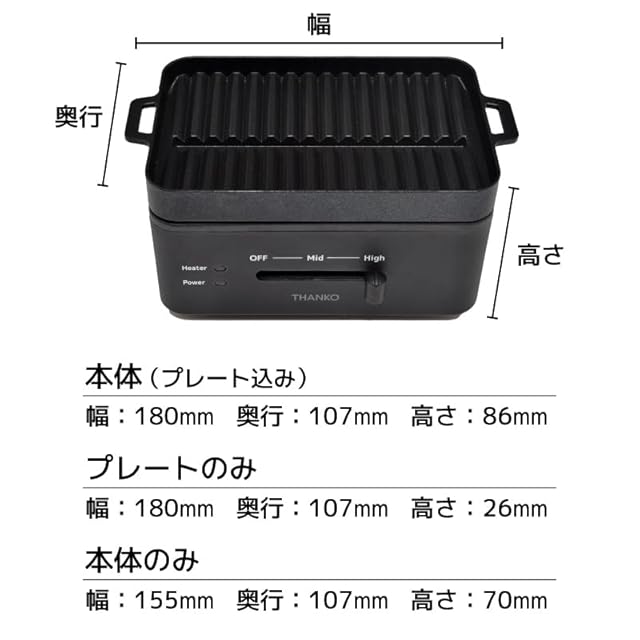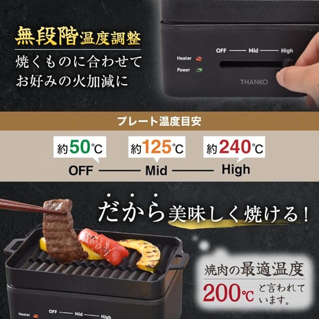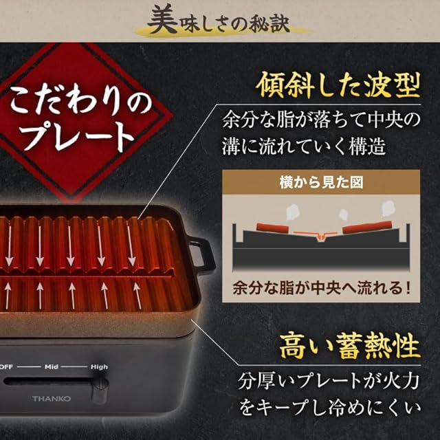 商品名:THANKO 一人用 焼肉プレート 卓上 ホットプレート コンパクト 一人焼肉プレート サンコー 卓上おひとりさま焼き肉 「ソログリル」 YAKUNKSBK