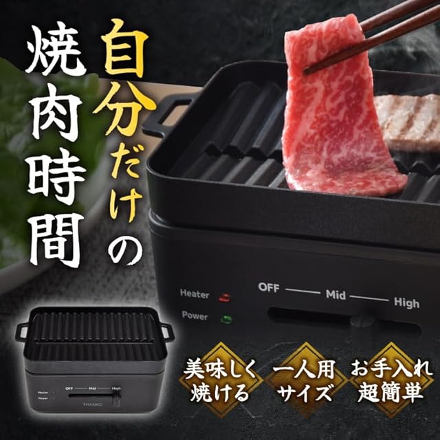 THANKO 一人用 焼肉プレート 卓上 ホットプレート コンパクト 一人焼肉プレート サンコー 卓上おひとりさま焼き肉 「ソログリル」 YAKUNKSBK